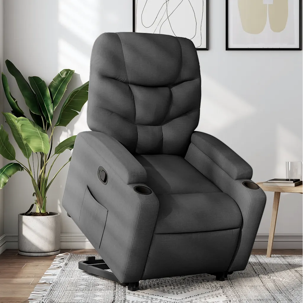 See püstitõusmist toetav elektriline tugitool aitab turvaliselt ja väiksema pingutuseta istumast püsti tõusta ning pakub samas mõnusat lõõgastust. Tugev konstruktsioon, pehme polster ja hingav tumehall kangas loovad mugava istekoha igasse elutuppa, samas kui manuaalne lamamisasend võimaldab keha igapäevasest koormusest välja puhata.