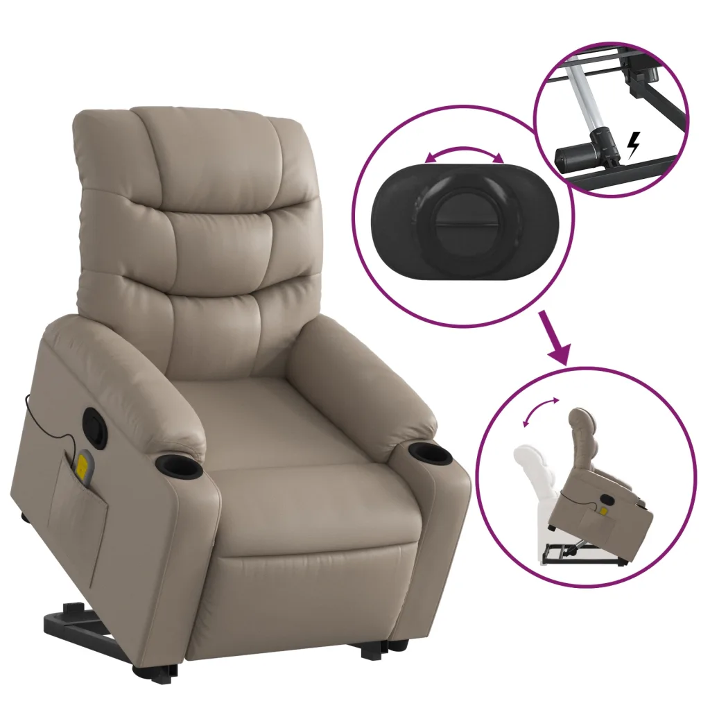 - Püstitõusmist toetav massaažitugitool cappuccino toonis kunstnahast polstriga