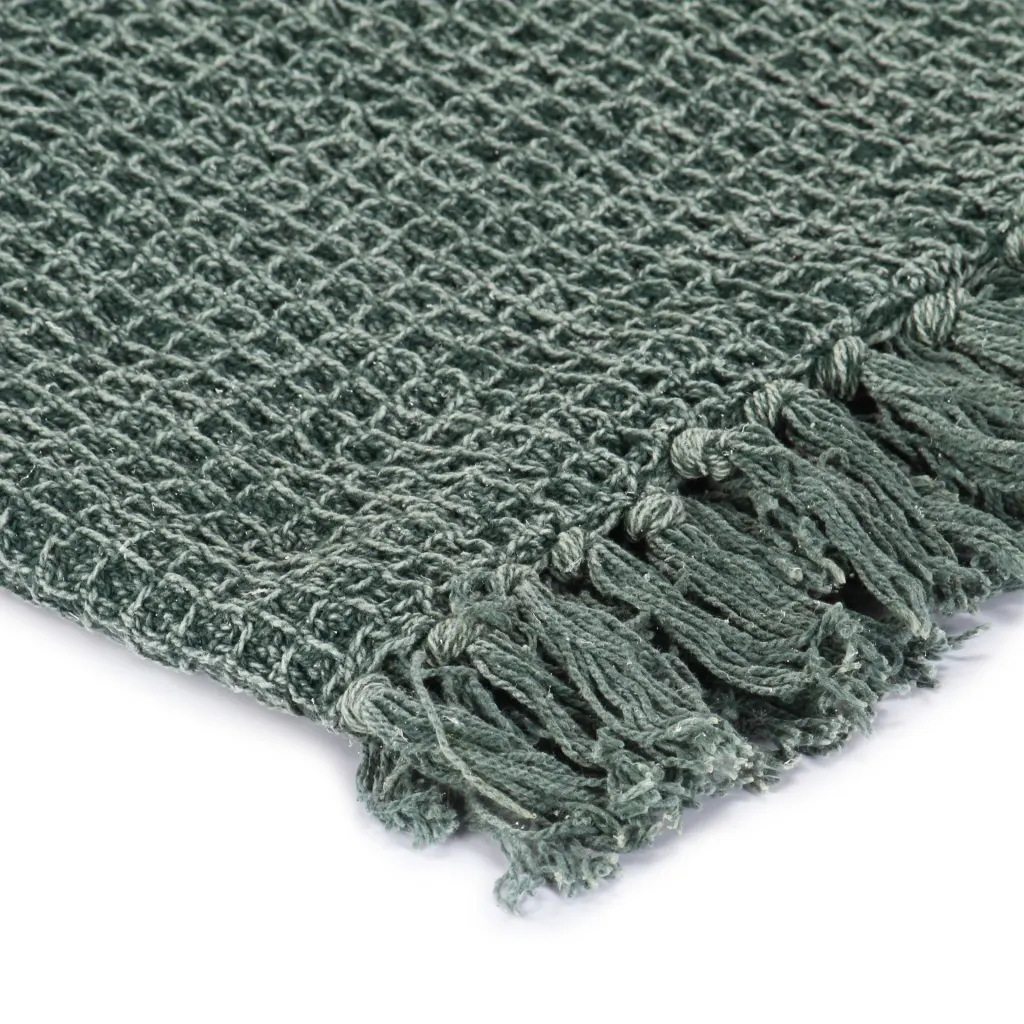 See 100% puuvillane pleed ühendab praktilise soojuse ja visuaalse efekti, sobides nii igapäevaseks kasutamiseks kui ka interjööri värskendamiseks. Kui otsid tekstiili, mis oleks korraga pehme, mugav ja stiilne, on see tumeroheline pleed lihtne viis oma elutuba või magamistuba ühe liigutusega hubasemaks muuta.