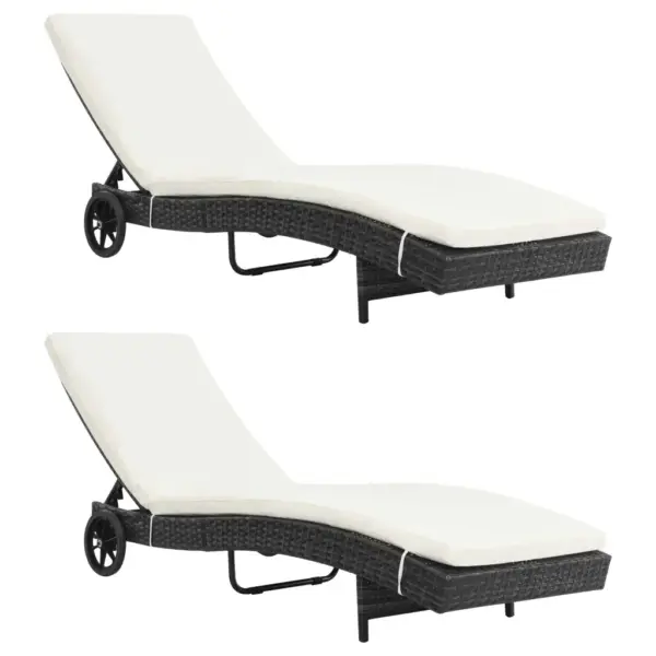 See must 2-osaline päevitustoolide komplekt loob aeda, terrassile või rõdule mugava koha puhkamiseks ja päevitamiseks. Vetthülgav PE-rotang ja pulbervärvitud terasraam on mõeldud kasutamiseks õues ning ratastega lamamistoolid saab vajaduse korral hõlpsalt päikese või varju kätte veeretada.