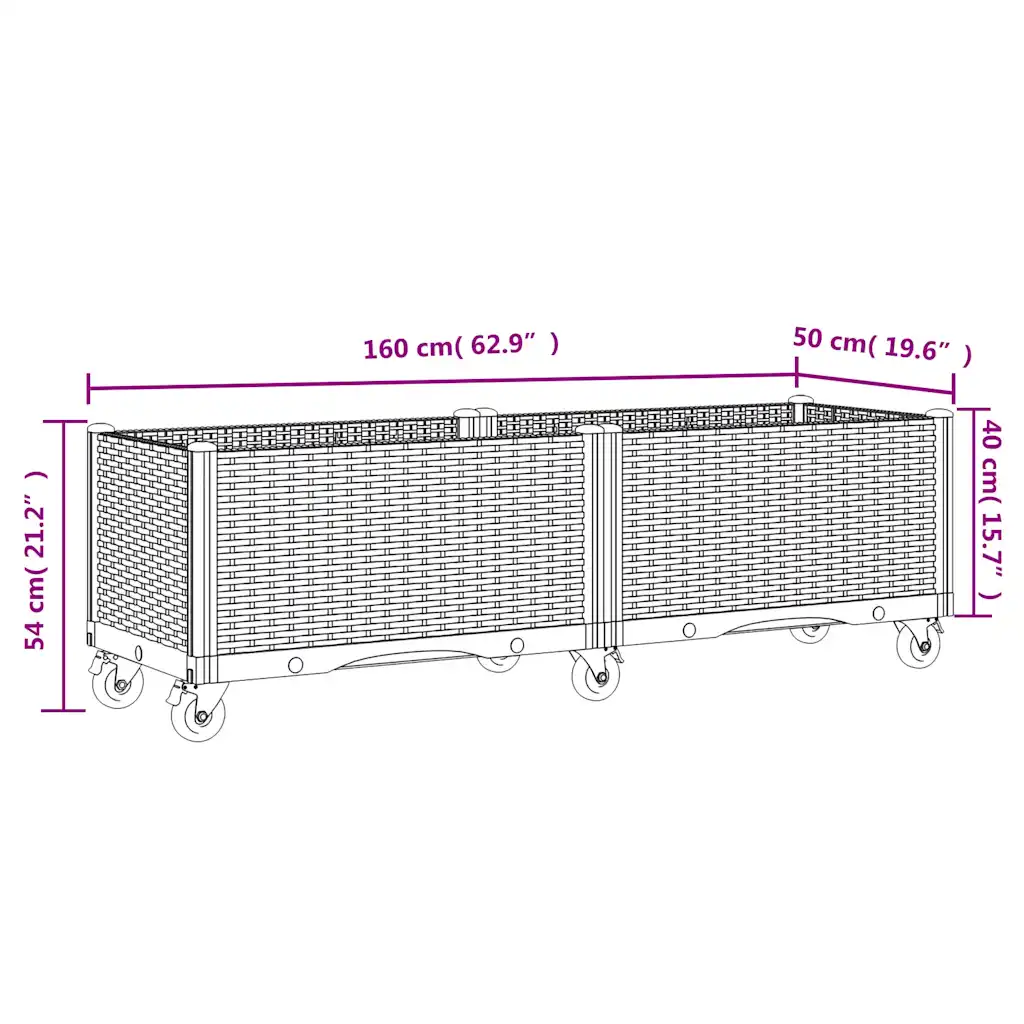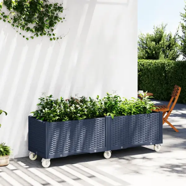 See ratastega taimekast on praktiline lahendus köögiviljade, lillede ja ronitaimede kasvatamiseks aias, rõdul või terrassil. Vastupidavast PP-materjalist valmistatud kast on kerge, kuid tugev ning sobib hästi välistingimustesse. Suur istutusmaht ja integreeritud võre aitavad luua kompaktse ja hästi organiseeritud istutusala.