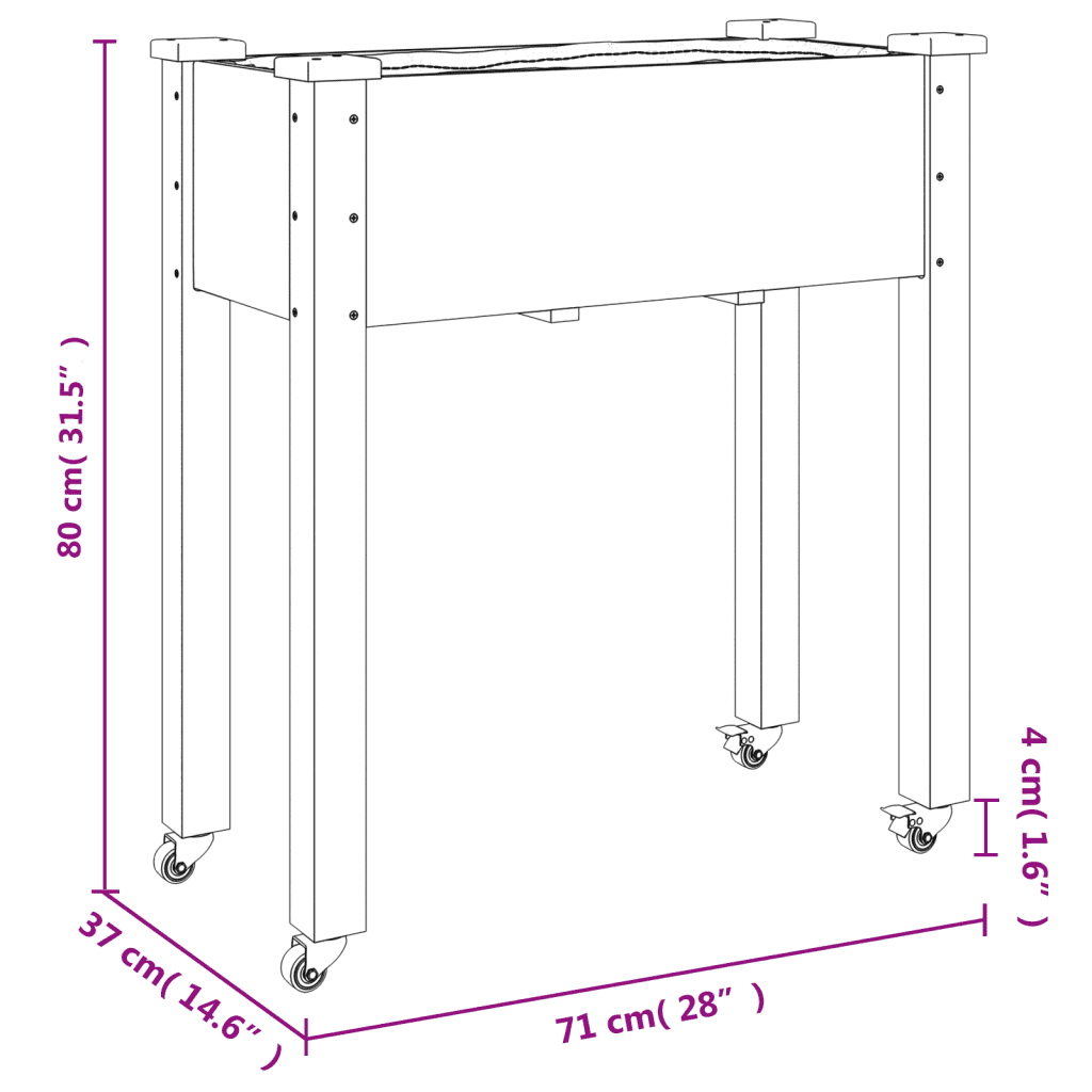 See nulupuidust ratastega taimekast võimaldab köögivilju, ürte ja lilli kasvatada mugaval kõrgusel, vähendades kummardamist. Kaasas olev vooder kaitseb puitu mullaga otsese kontakti eest ning aitab hoida taimekasti korras, samal ajal kui integreeritud äravooluavad juhivad liigse vee eemale.