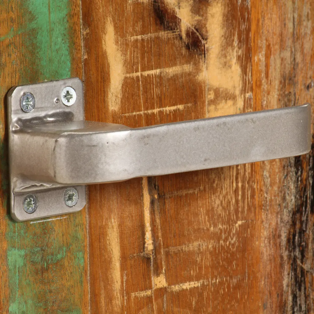 • Taaskasutatud puidust korpus on valmistatud vanadest taladest ja põrandalaudadest, mis annavad kapile iseloomuliku mustri ja värvimängu.