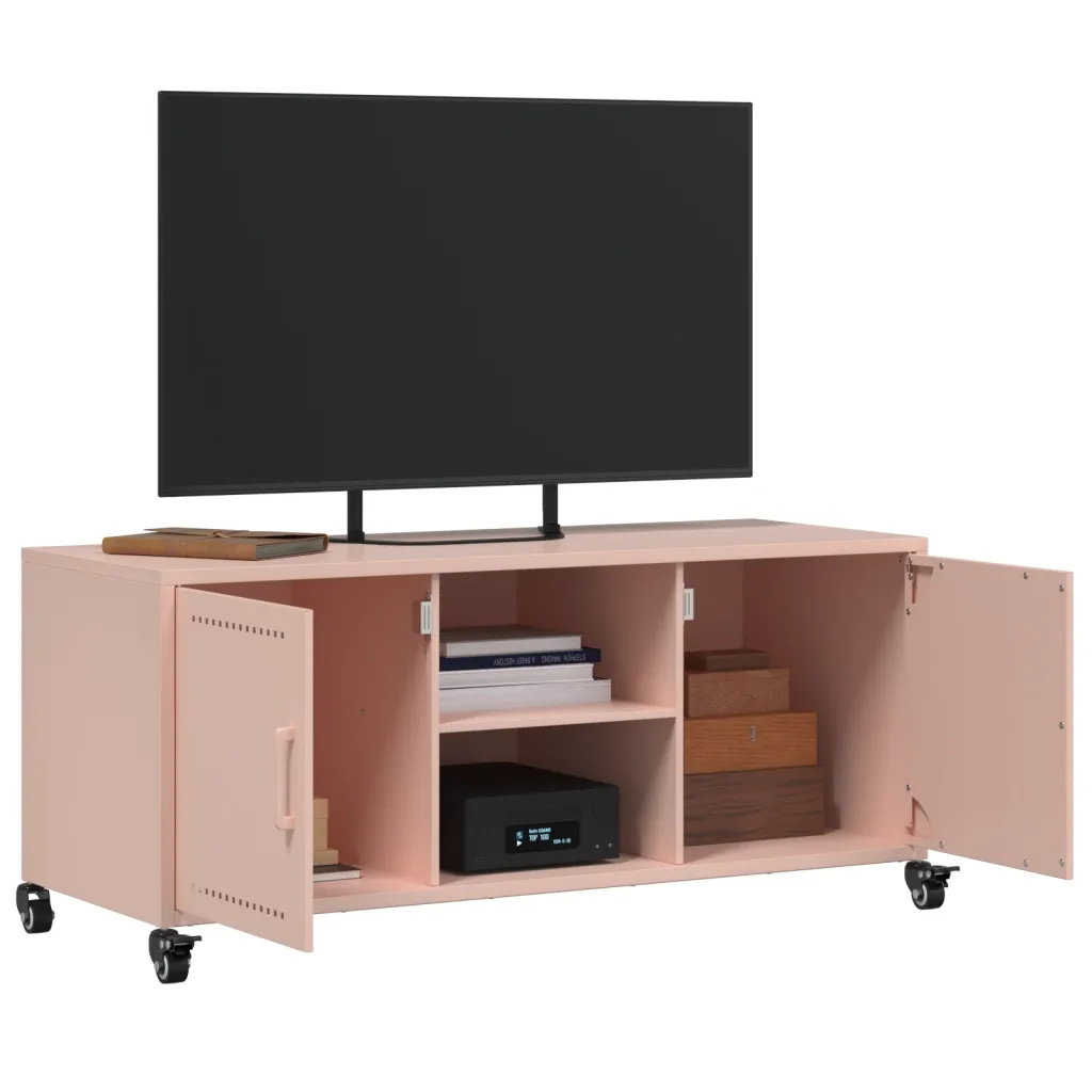See madal roosa terasest telerialus ratastel aitab koondada televiisori, meediamängijad ja tarvikud ühte praktilisse lahendusse. Vastupidav konstruktsioon sobib igapäevaseks kasutuseks elutoas, noortetoas või töötoas, pakkudes samal ajal diskreetset lisapanipaika ja kaasaegset ilmet.