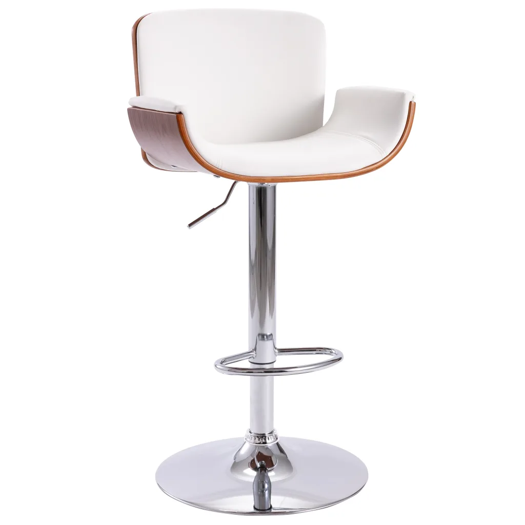 - 1 x reguleeritav baaritool valge kunstnahast istme ja tumepruuni puitraamiga