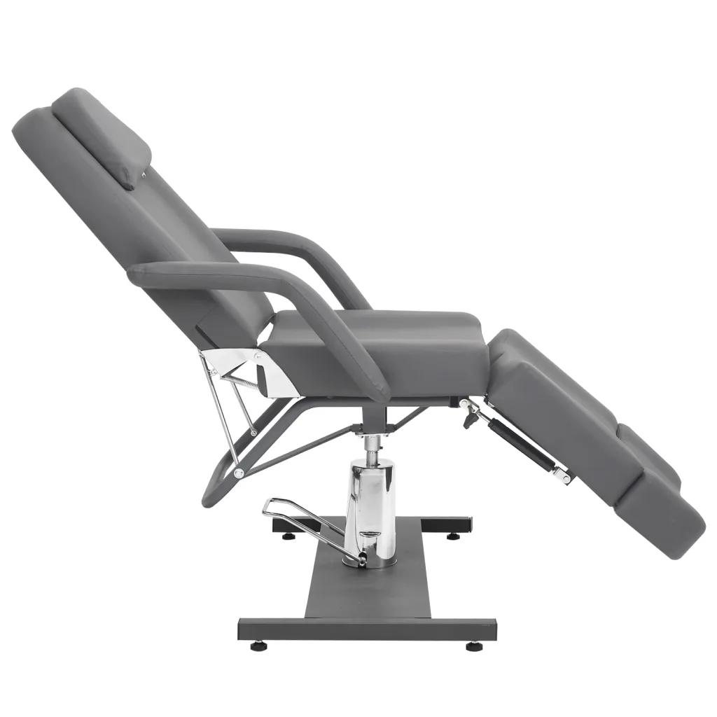 Reguleeritav ilusalongi hooldustool sobib pediküüri, iluhoolduste, massaaži ja tätoveerimise tegemiseks. Hall kunstnahast polsterdus on lihtsasti puhastatav ja annab salongile ühtlase professionaalse ilme. Tänu mitmekülgsetele seadistusvõimalustele saab tööasendi kiiresti kohandada vastavalt protseduurile ja kliendi vajadustele.