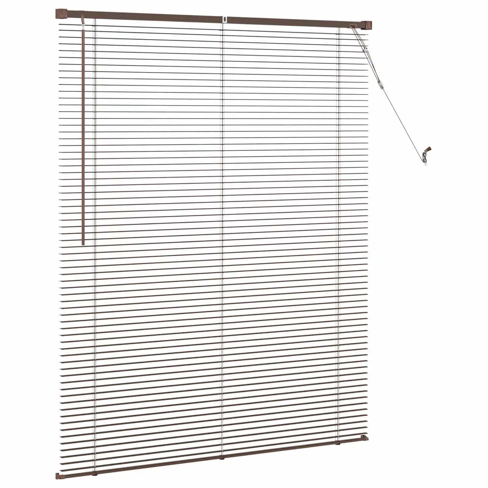 See reguleeritav Veneetsia ruloo on praktiline aknakate, mis sobib hästi büroodesse ja kodukontorisse ning teistesse siseruumidesse. Tumepruuni mustriga PVC-lamellid võimaldavad täpselt kontrollida valguse hulka ja privaatsust, lisades samal ajal interjööri modernse ilme.
