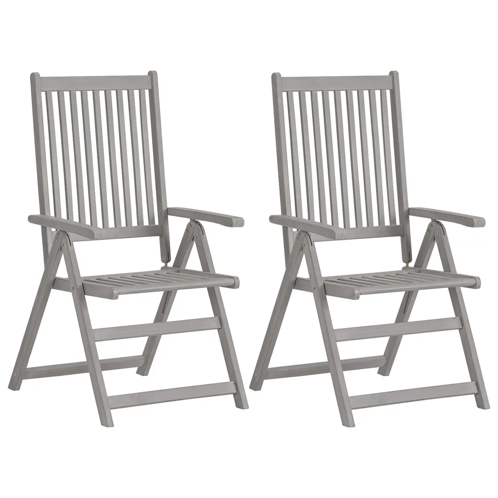 See 2-osaline aiatoolide komplekt loob teie terrassile või aeda mugava istumisala pere ja sõpradega einestamiseks või lihtsalt värske õhu nautimiseks. Halli viimistlusega akaatsiapuidust toolid on stabiilsed ja vastupidavad, reguleeritavad seljatoed ning pehmed kreemjad padjad tagavad lõõgastava istumiskogemuse.