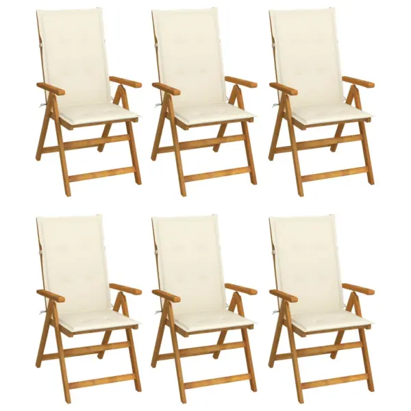 See kuuest kokkupandavast akaatsiapuidust aiatoolist koosnev komplekt loob aias, terrassil või siseõuel mugava istumisala igapäevaseks einestamiseks ja puhkamiseks. Reguleeritav seljatugi, pehmed kreemjasvalged padjad ja ruumisäästlik kokkuklapitav konstruktsioon ühendavad praktilisuse ning loomuliku puiduse välimuse.