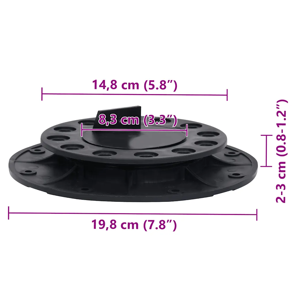 See reguleeritavate põrandaplaadi tugijalgade komplekt aitab luua plaatidele ühtlase ja kindla aluse erinevatel välialadel. Mustast polüpropüleenist jalad võimaldavad kõrgust reguleerida vahemikus 20–30 mm, et tasandada aluspinna väikseid kõrguste erinevusi ja saavutada korrektne tulemus.