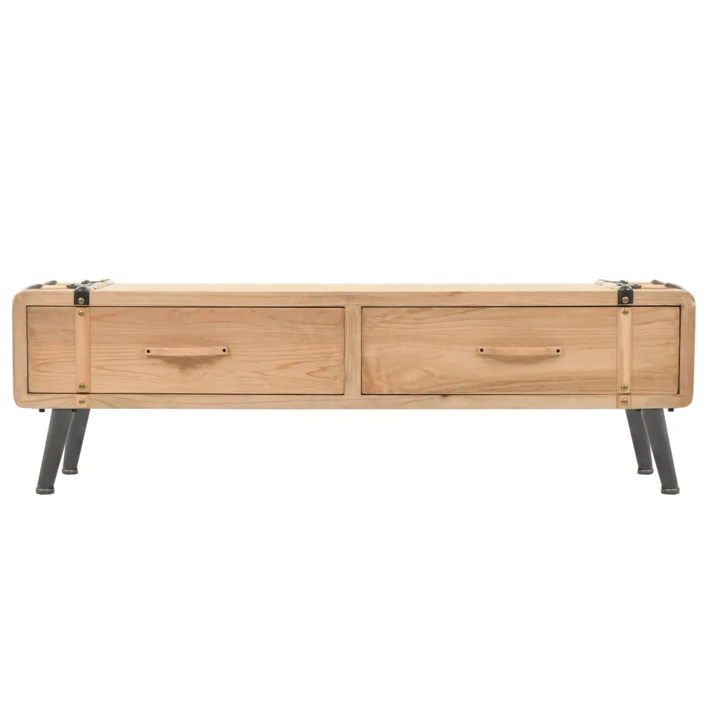 Kapil on kaks mahukat sahtlit, kuhu saab paigutada DVD mängija, mängukonsooli, striimimisseadme tarvikud ja muud meediakandjad, et pind jääks puhas ja korras. Tugevast kuusepuidust, MDFist ja terasest valmistatud konstruktsioon tagab stabiilsuse ning kohvrikujuline disain rõhutab mööbli vanaaegset iseloomu.