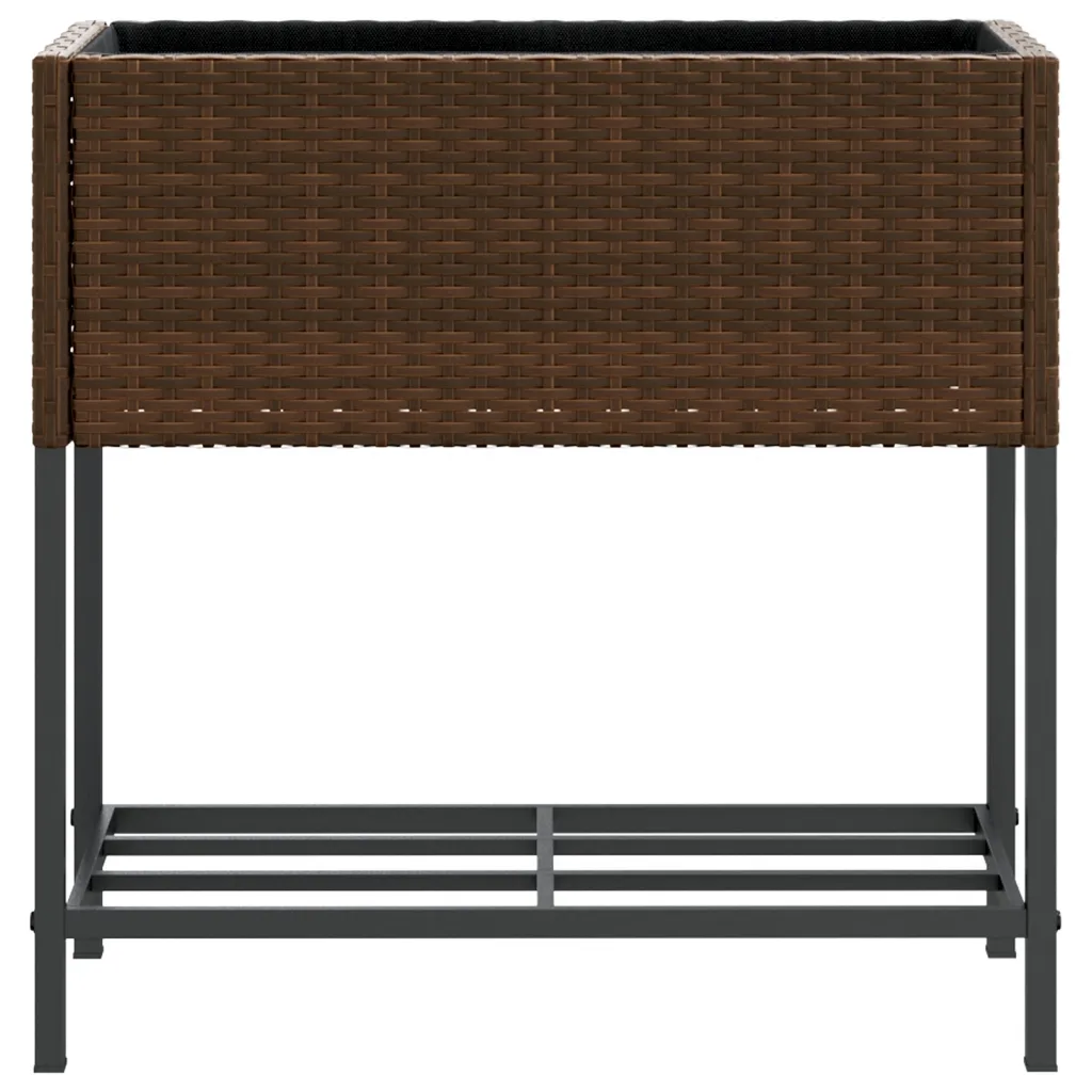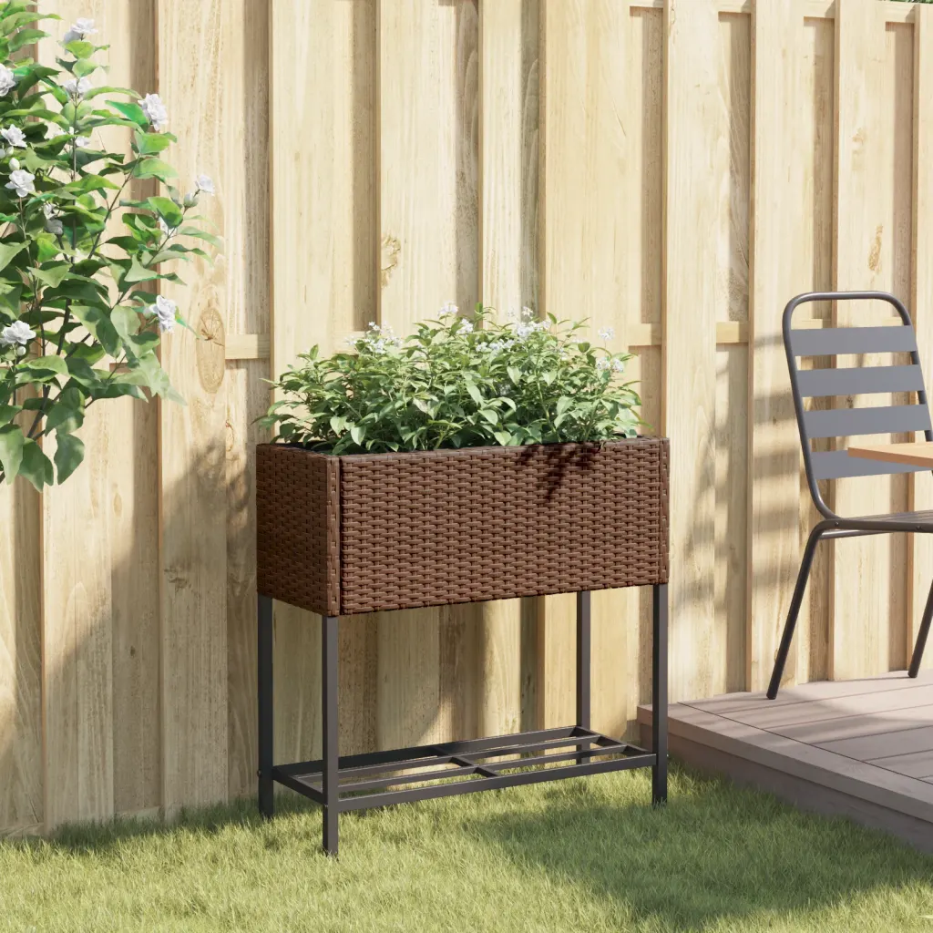 See riiuliga aia taimekast pruunist polürotangist aitab hoida lilled ja maitsetaimed mugaval kõrgusel ning eraldi maapinnast. Tugev terasraam ja alumine riiul loovad kompaktse istutuskoha väiksemale õuealale, hoides ühtlasi ümbruse puhtamana.