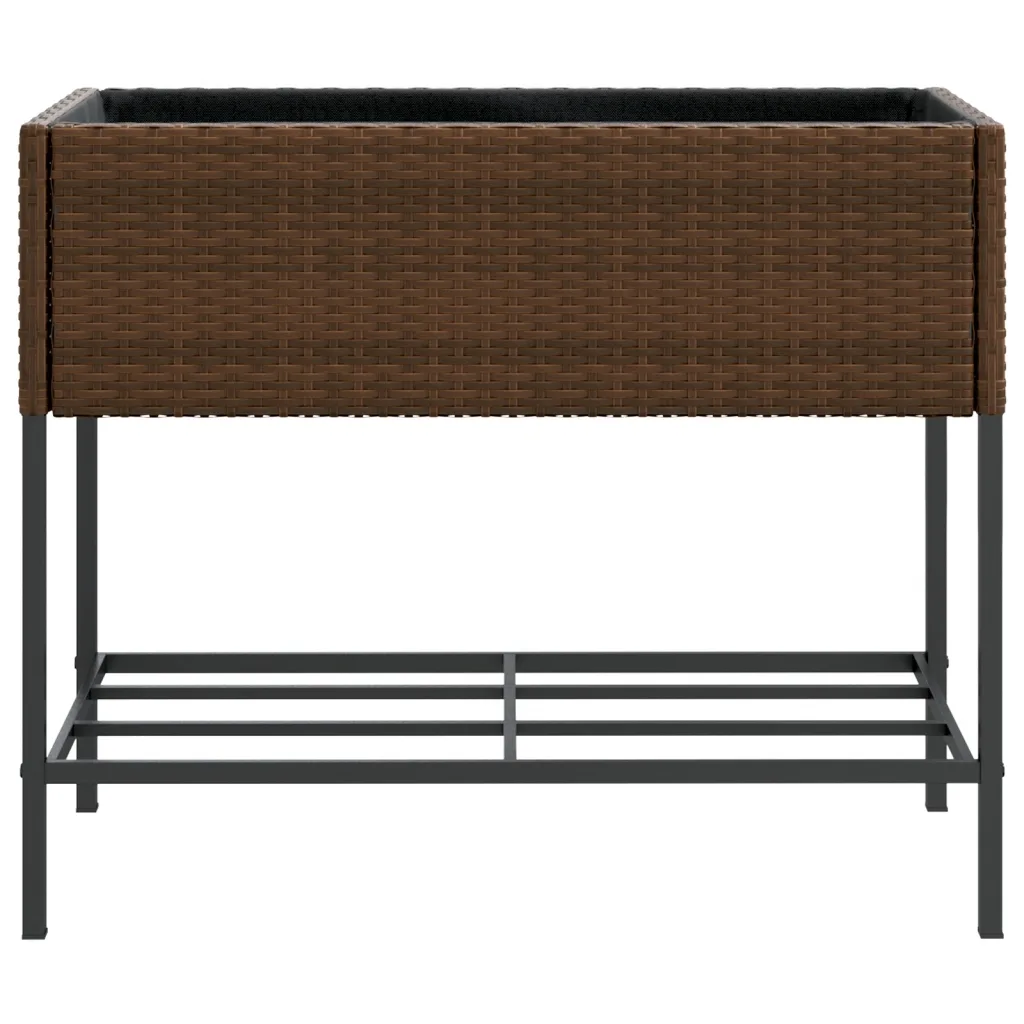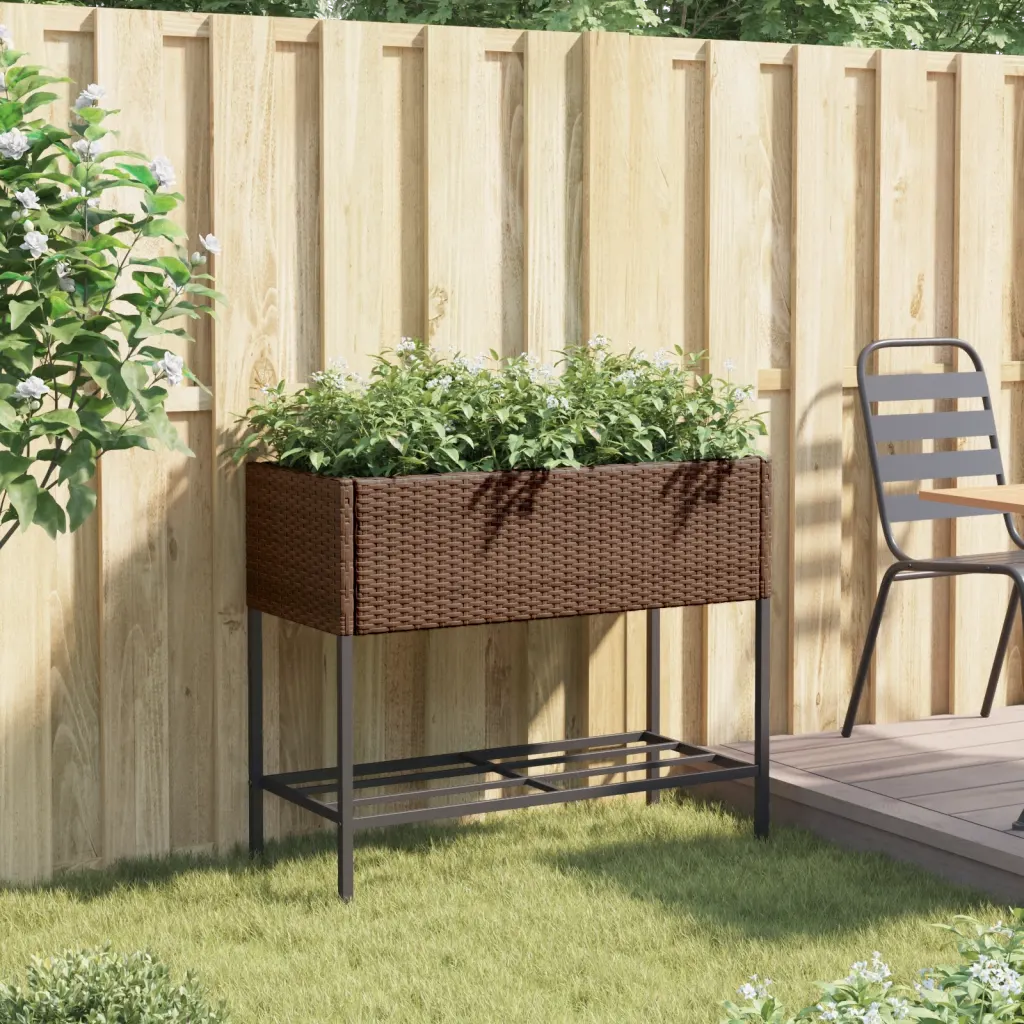 See riiuliga kõrgendatud aia taimekast on praktiline lahendus lillede ja maitsetaimede kasvatamiseks terrassil või aias. Pruunist polürotangist viimistlus sobitub hõlpsasti erineva välisinterjööriga, samal ajal kui pulbervärvitud terasraam tagab vastupidavuse ja stabiilsuse. Tänu alumisele riiulile on muld ja aiatarvikud alati käeulatuses ning kasvuala püsib puhtam ja korrastatum.