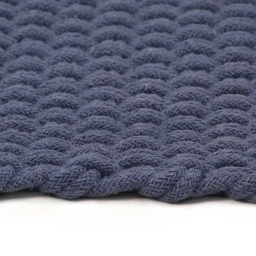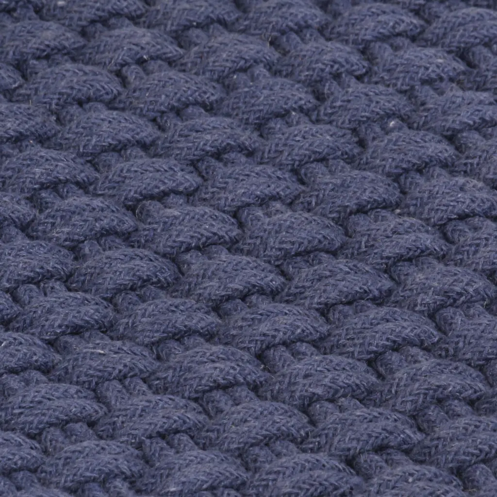 See tumesinine ristkülikukujuline puuvillavaip lisab ruumi hubasust ja pehmust ning kaitseb samal ajal põrandapinda igapäevase kulumise eest. Raske köiega kootud struktuur loob maheda tekstuuri, mis tundub palja jala all mugav, ning vaiba neutraalselt sügav toon sobitub kergesti erinevate sisustusstiilidega.