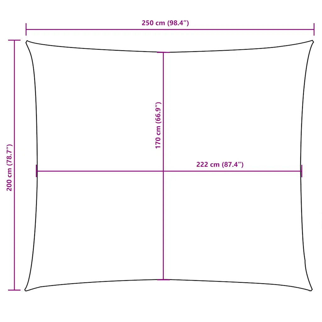 - Ristkülikukujuline disain 2 x 2,5 m sobib hästi terrasside, rõdude ja istumisnurkade katmiseks, pakkudes proportsionaalset varju.