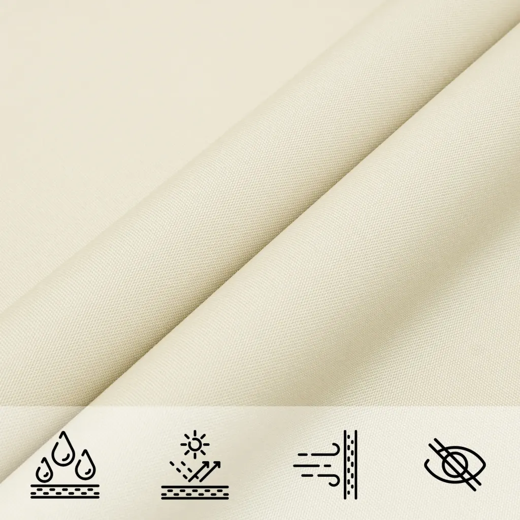 See kreemjasvalge päikesepuri ühendab suure varjuala, veekindla ja UV-kaitsega oxford-kanga ning vastupidavad kinnitusdetailid. Kui soovite oma terrassil, aias või rõdul luua kaitstud ja mugava puhkeala, on see praktiline lahendus, mis pakub varju ja kaitset erinevates ilmastikuoludes.