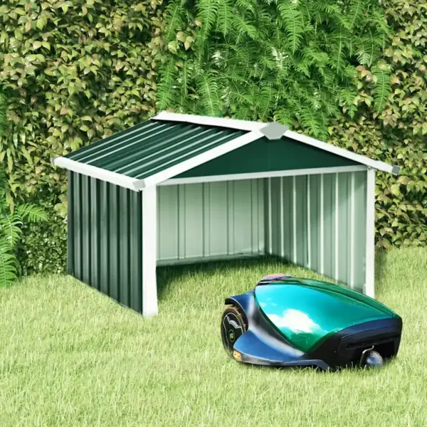 See roheline robotmuruniiduki kuur loob niidukile ja selle laadimisjaamale kaitstud koha, vähendades vihma, päikese ja lume mõju seadmele. Tsingitud terasest konstruktsioon tagab stabiilsuse ja vastupidavuse, nii et muruniiduk saab laadimise ajal turvaliselt varjus olla.