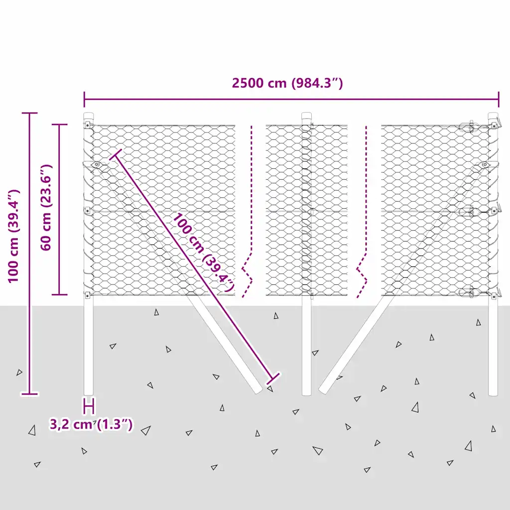 See roheline aiavõrgu ja aiapostide komplekt aitab piiritleda aedu, karjamaid või hoove ning hoida lemmikloomad ja vara oma territooriumil. Komplekti kogupikkus on 25 m ja kõrgus 0,6 m, mis sobib hästi madala piirde loomiseks erinevates välitingimustes.