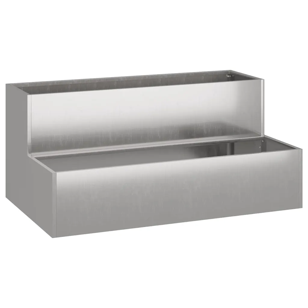 See roostevabast terasest aia istutuskast on praktiline lahendus, kui soovid tuua rohkem rohelust oma rõdule, terrassile või aeda. Hõbedane viimistlus ja selged jooned loovad modernse ilme, mis sobib hästi kaasaegse väliruumi kujundusega. Mahukad mõõtmed 100 x 60 x 45 cm pakuvad piisavalt ruumi erinevate lillede, maitsetaimede või väiksemate põõsaste istutamiseks.