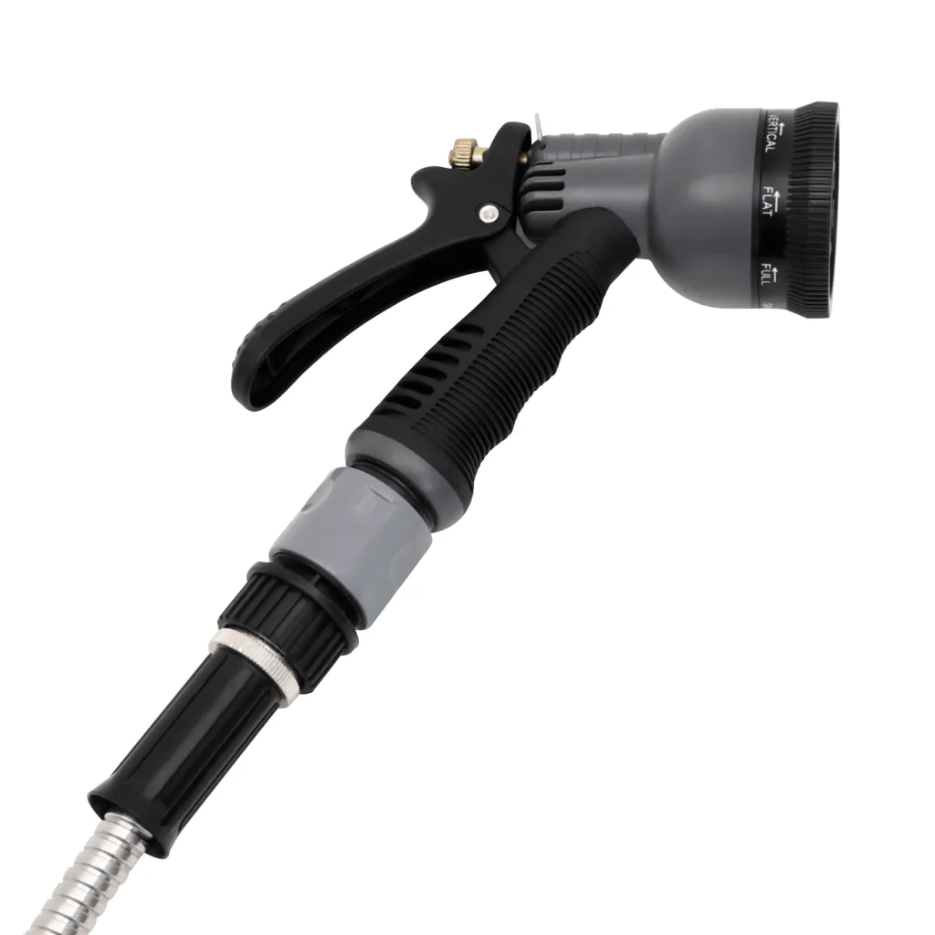 - 8-funktsiooniline pihustusotsak pakub erinevaid pihustusmustreid, mida saab düüsi keerates kiiresti muuta, et kohandada veejuga vastavalt kastmise või puhastamise eesmärgile.