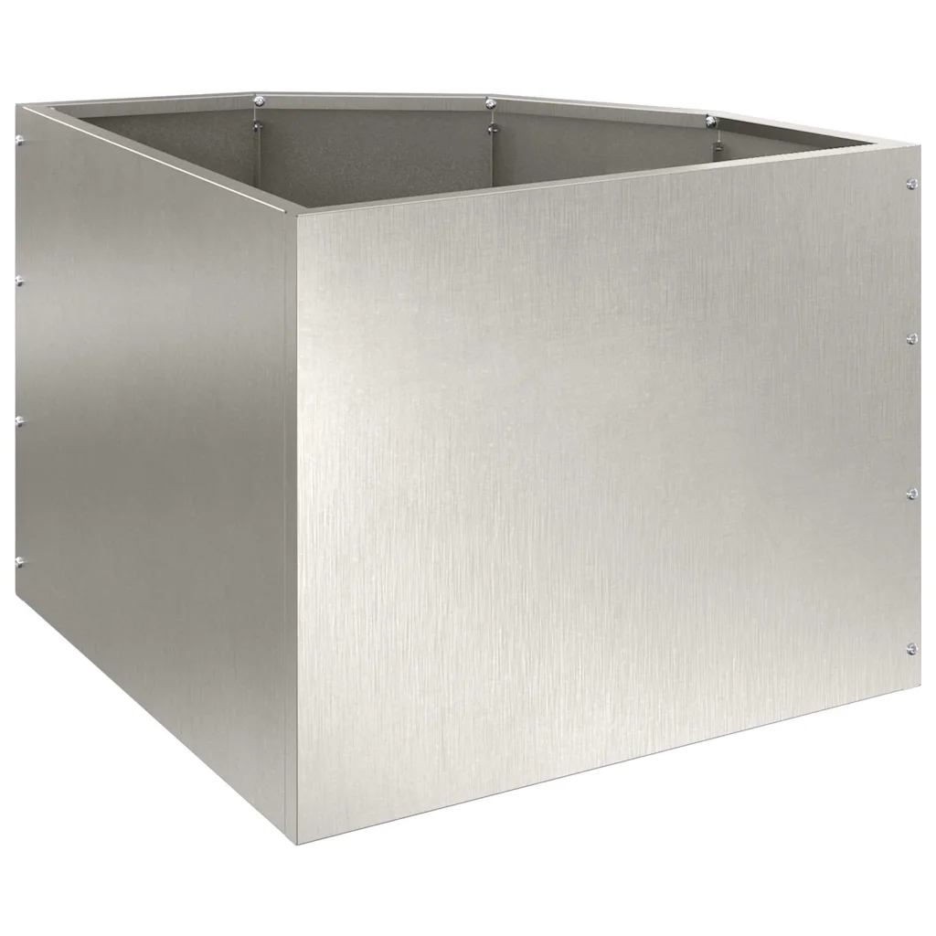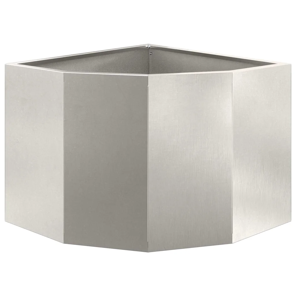 Roostevabast terasest nurgapott aitab maksimaalselt ära kasutada välistingimustes olevaid nurki, kus tavalised istutuskastid hästi ei sobitu. Hõbedane pind ja puhas joonis loovad modernse ilme ning pakuvad piisavalt ruumi taimede istutamiseks aias, terrassil või rõdul.