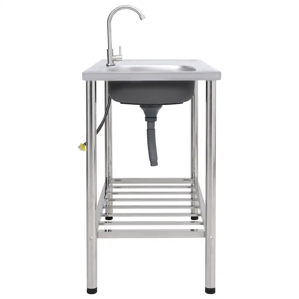 See roostevabast terasest välipesuvalamu on mõeldud nõude ja toiduainete pesemiseks ning ettevalmistamiseks õues. Sügav kraanikauss koos kraani ja äravooluga pakub piisavalt ruumi suurtele pannidele ja nõudele, samal ajal kui integreeritud nõrutusalus loob lisapinda köögiviljade lõikamiseks või nõude kuivatamiseks.