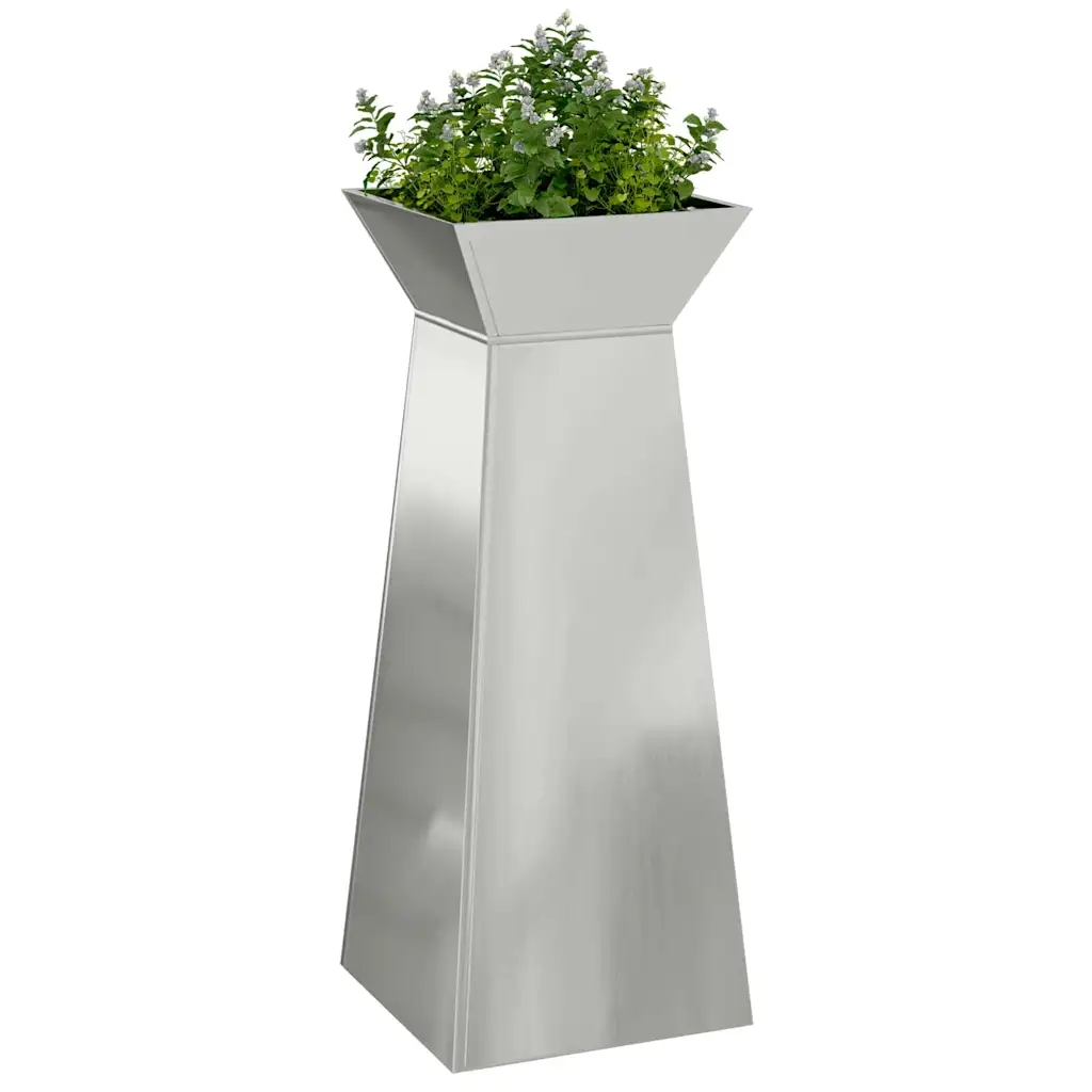 See hõbedane sambakujuline aiapott aitab tõsta taimed pilgupüüdvasse kõrgusesse ja luua aeda või terrassile kaasaegse aktsendi. Kompaktne 40 x 40 cm põhi ja 101 cm kõrgus võimaldavad rõhutada üksikut taime või väikest kompositsiooni, ilma et see võtaks liigset ruumi, muutes poti sobivaks nii suurele aiale kui ka väiksemale terrassile.