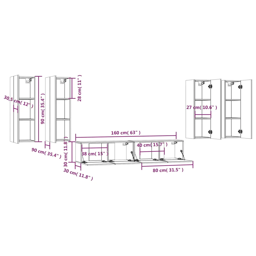 See 6-osaline telerikappide komplekt sobib hästi neile, kes soovivad teleri ümbruse korrastada ja samal ajal põrandapinda säästa. Ühtne hall Sonoma tamme viimistlus, praktilised uksed ja seinale kinnitatav konstruktsioon loovad funktsionaalse meediaseina, mis aitab hoida elutoa puhta ja organiseerituna.