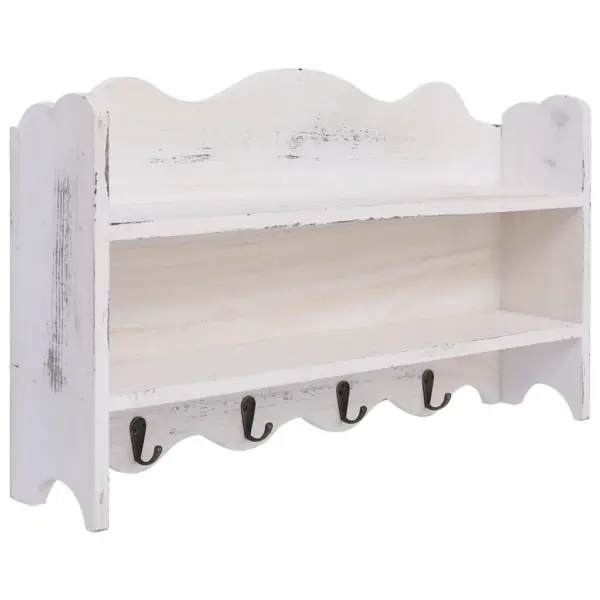 Miks valida Seinale kinnitatav riidenagi kahe riiuli ja 4 konksuga, valge paulowniapuidust, 50 x 10 x 30 cm?