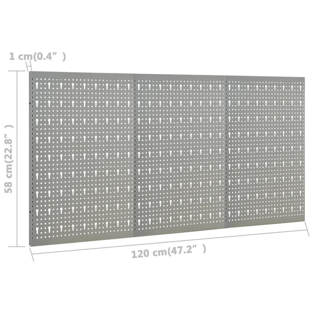 Kolmest omavahel ühendatavast paneelist koosnev seinale kinnitatav tööriistapaneel aitab hoida tööriistad töökojas, garaažis või väikeses tootmises korrastatult ja hõlpsasti kättesaadavana. Perforeeritud hallist terasest pinnad sobivad erinevat tüüpi riputuskonksude ja hoidikute jaoks, võimaldades tööpinda paremini kasutada ning vähendades segadust tööpingi ümber. Tänu 120 cm kogulaiusele sobib paneel hästi 120 cm laiuse tööpingi või kappide kohale.