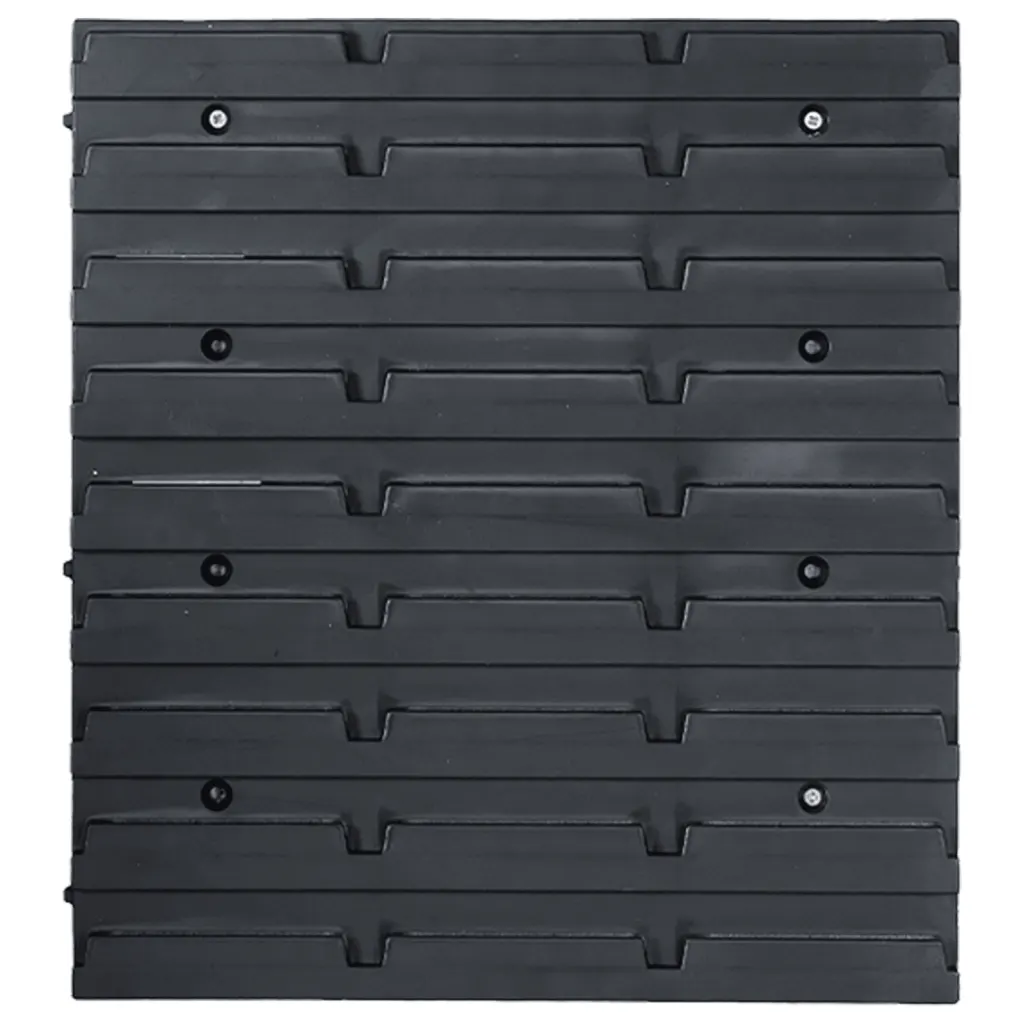 See 96-osaline hoiukastide komplekt aitab hoida garaaži, töökoja või käsitööruumi väiksemad osad hästi organiseerituna. Seinale kinnitatavad paneelid ja nendele paigutatavad plastist karbid võimaldavad kasutada ära vertikaalset pinda ning hoida kruvid, naelad, mutrid, pistikupesad ja muud detailid käepärast ning selgelt eristatuna.