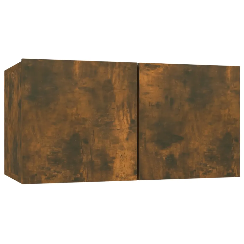- 4 seinale paigaldatavat telerikappi, suitsutatud tamme tooni tehispuidust, iga kapi mõõdud 60 x 30 x 30 cm (laius x sügavus x kõrgus)