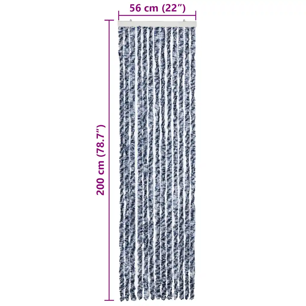 See šenilliribadest putukakardin kaitseb tõhusalt, et kärbsed, sääsed ja muud putukad ei pääseks majja ega haagissuvilasse, samal ajal kui värske õhk ja valgus pääsevad vabalt liikuma. Sinise ja valge mustriga kardin sobib hästi ukseavale, kus soovid hoida ukse avatuna ilma tüütute putukateta.