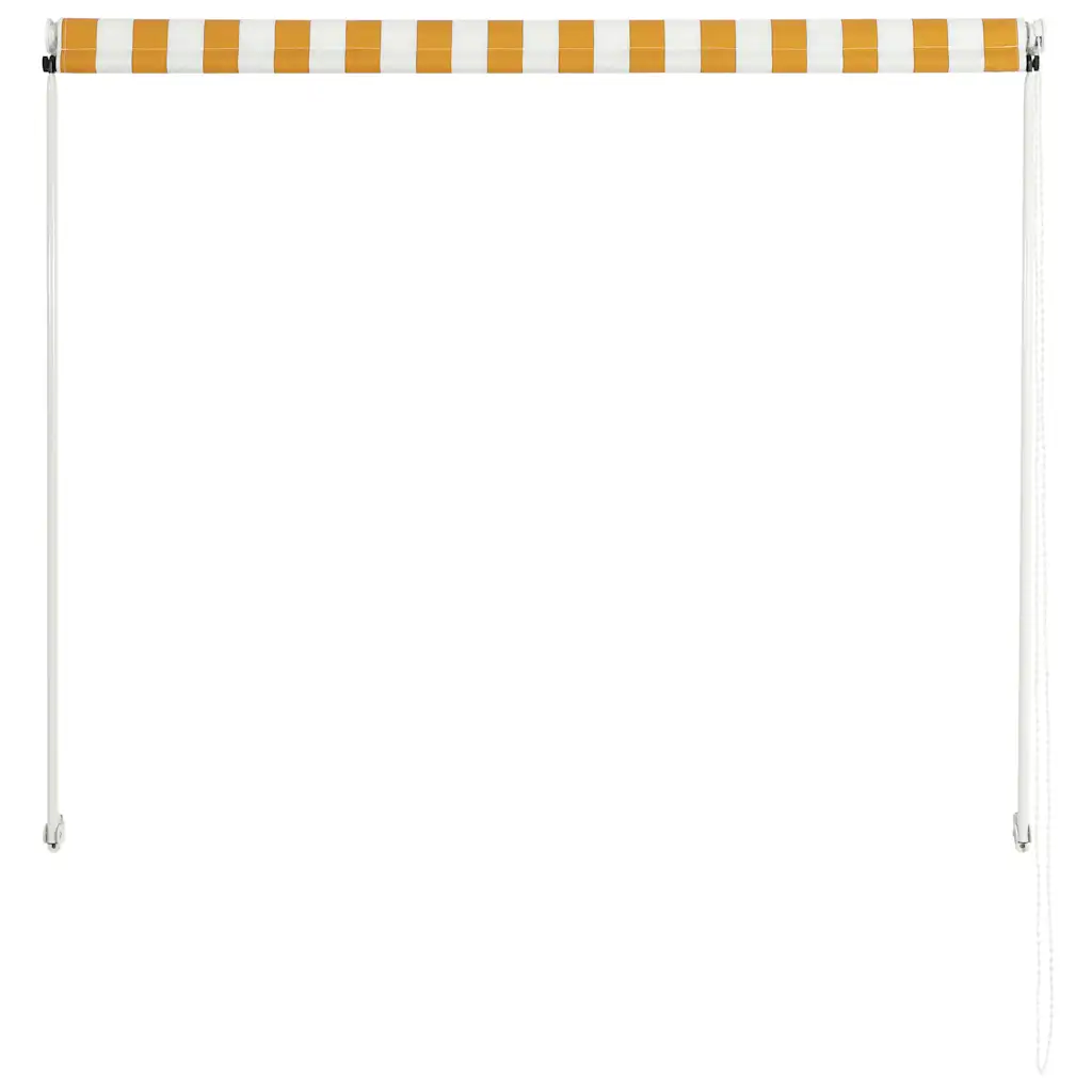 Kui soovid lisada akendele, terrassile või rõdule kaitset päikese ja vihma eest, on see kollase-valge triibuline varikatus praktiline lahendus. Reguleeritav pikkus, vastupidav terasraam ja kergesti hooldatav polüesterkangas loovad funktsionaalse varju, mida saab mugavalt kohandada vastavalt kasutusvajadusele.