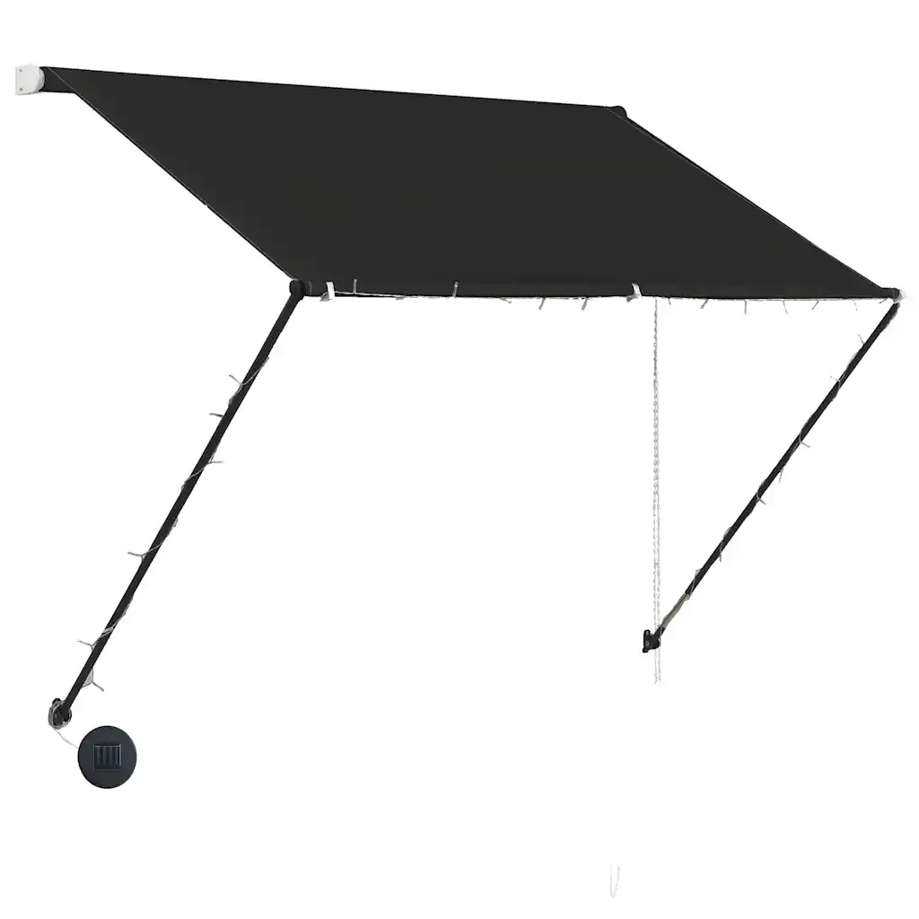 See kompaktne sissetõmmatav varikatus loob mugava varju akende ette, terrassile, rõdule või aeda. UV-kindel ja vettpidav PA-kattega polüesterkangas aitab vähendada ülekuumenemist ning kaitseb mööblit pleekimise eest. Integreeritud päikesepaneeliga LED-riba pakub õhtuti energiasäästlikku valgustust, muutes väliala kasutatavaks ka pimedal ajal.