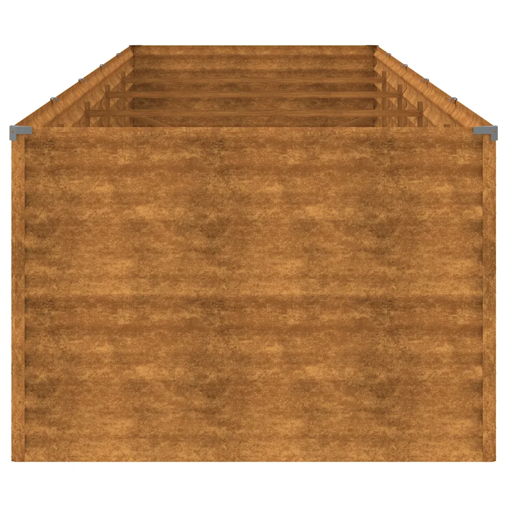 Corteni terasest taimekast on praktiline lahendus aia, rõdu või terrassi haljastamiseks, pakkudes rohkelt ruumi taimedele ja samal ajal kaunistades väliruumi. Suur 479 x 100 x 69 cm taimekast sobib nii dekoratiivsete lillede kui ka köögiviljade ja ürtide kasvatamiseks, moodustades silmapaistva roostevärvi aktsendi.