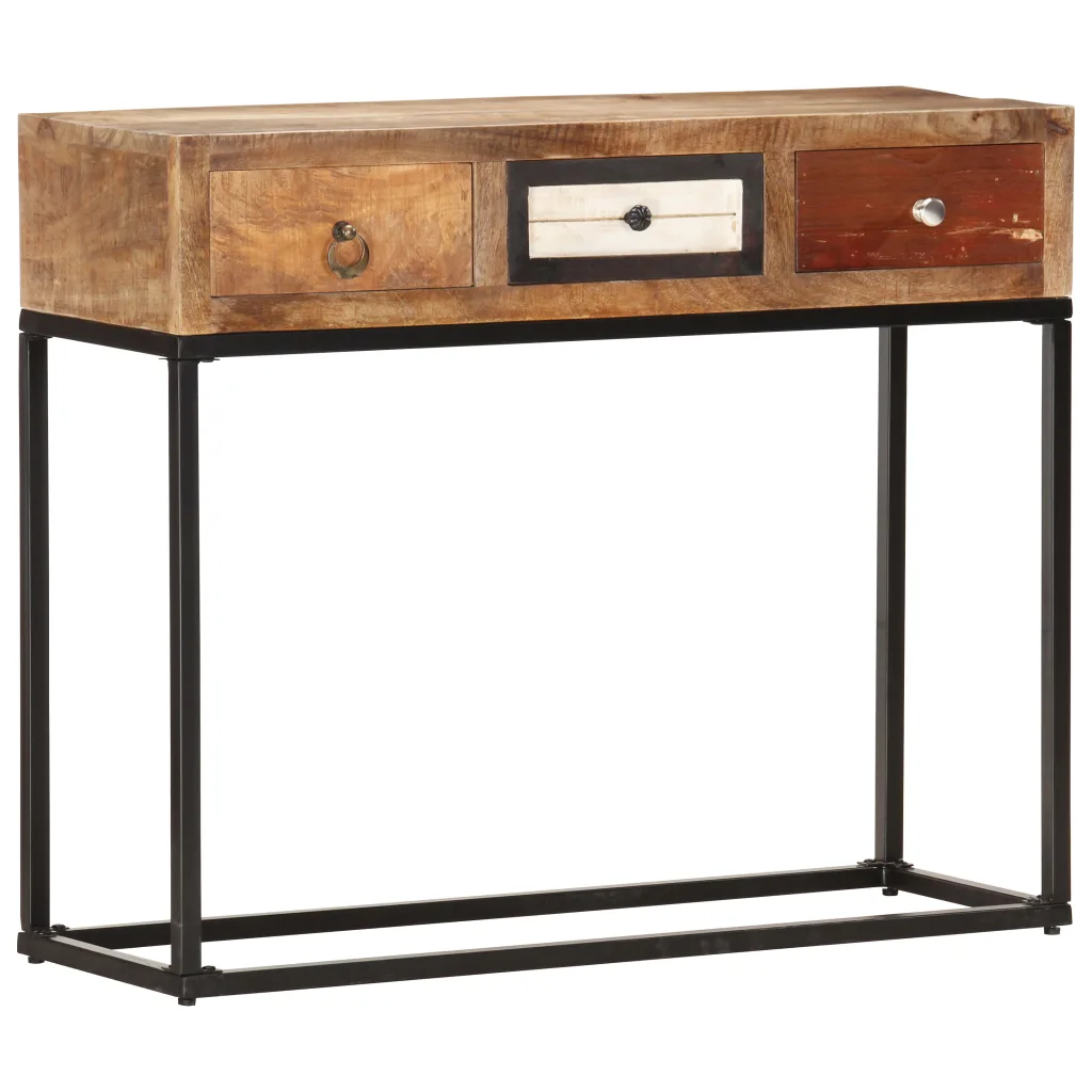 See taaskasutatud puidust konsoollaud on praktiline ja samas dekoratiivne lisa sinu sisekujundusse. Naturaalse struktuuriga puit kombineerituna pulbervärvitud terasraamiga loob tagasihoidliku tööstusliku ilme, mis sobitub eri stiilis ruumidesse. Laual on kolm sahtlit, kuhu saad käeulatusse paigutada võtmed, dokumendid ja muud väiksemad esemed.