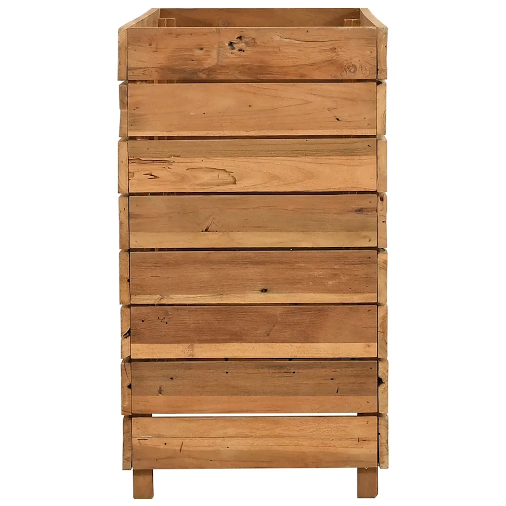 • Taaskasutatud tiigipuit on väga tugev ja vastupidav materjal, mille kaunid puidusüü mustrid annavad taimelavale ainulaadse ilme.