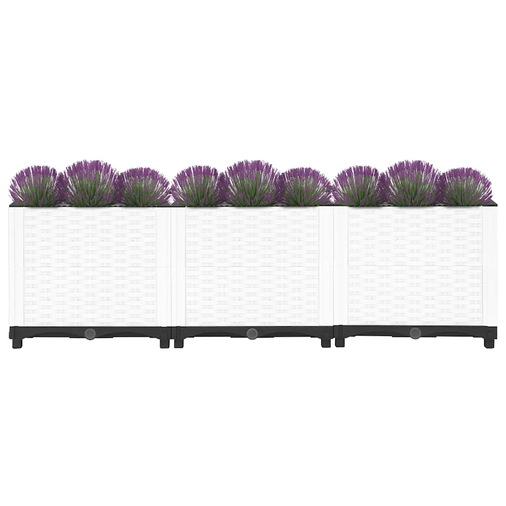 See valge rotangimustriga taimelava pakub mugava lahenduse lillede, maitsetaimede ja köögiviljade kasvatamiseks, kui maapinda on vähe või see pole sobiv. Polüpropüleenist konstruktsioon on kerge ja vastupidav ning mõõdud 120 x 40 x 38 cm annavad taimedele rohkelt kasvuruumi.