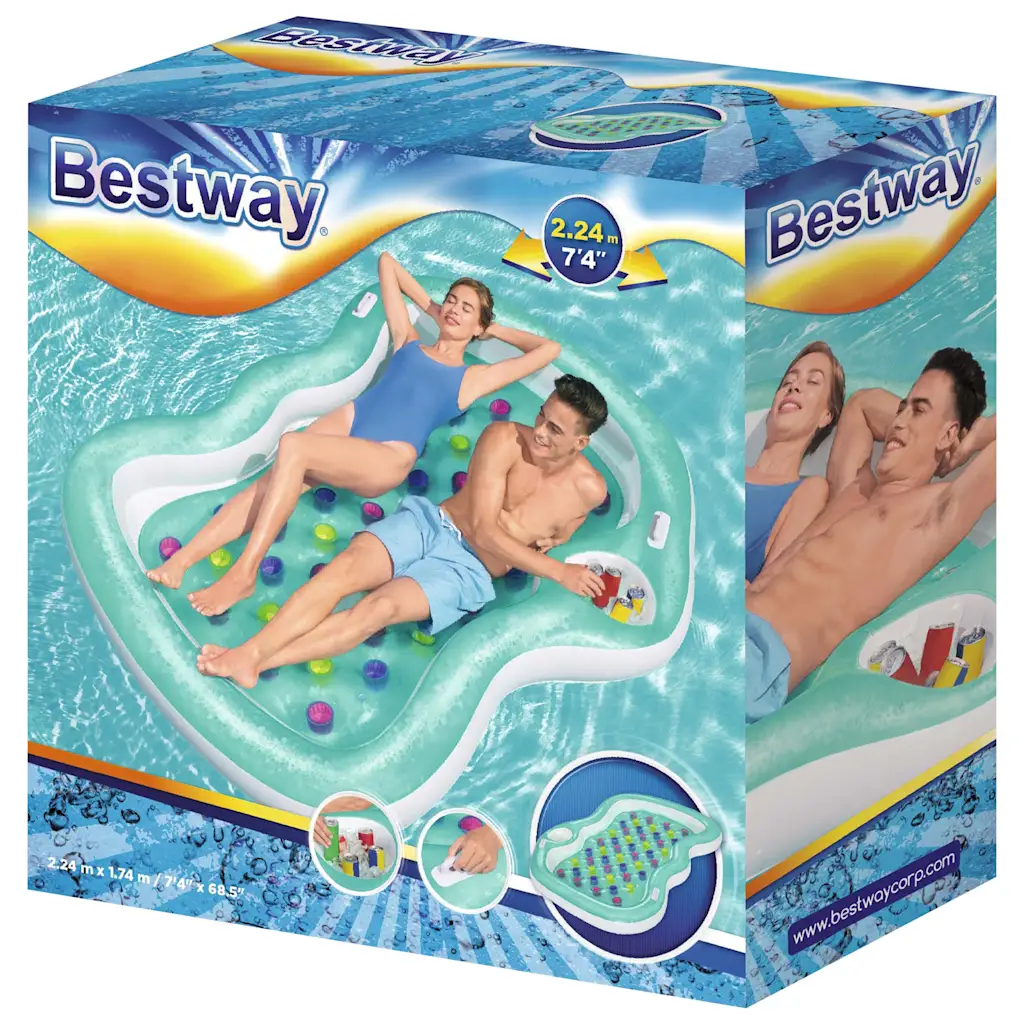 Mitmevärviline täispuhutav kahekohaline basseinimadrats pakub mõnusat kohta lõõgastumiseks basseinis või rahulikus veekogus. Ruumikad mõõdud 224 x 174 cm võimaldavad kahel täiskasvanul korraga mugavalt lamada, samas kui sisseehitatud hoiuala hoiab joogid ja suupisted käeulatuses, et saaksite veemõnusid nautida ilma veest välja tulemata.