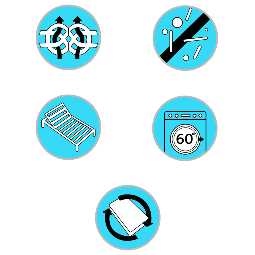 • Spetsiaalsed vaht- ja polsterkihid – jaotavad kehakaalu ühtlasemalt ning aitavad vähendada survepunkte, mis võivad põhjustada pinget ja ebamugavust.