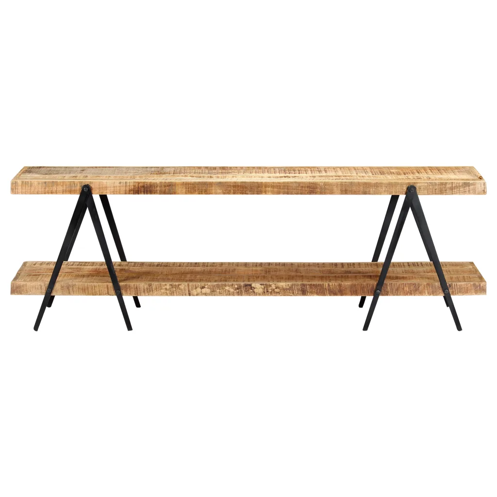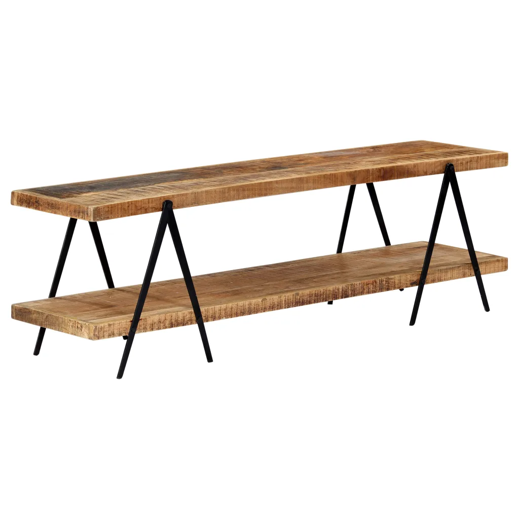 See madal telerikapp mangopuidust loob elutuppa maalähedase ja tööstusliku ilme, pakkudes kindlat pinda telerile ja multimeediaseadmetele. Kahe avatud riiuliga HiFi-kapp aitab hoida seadmed, raamatud ja dekoratsioonid käeulatuses ning ruumi liigselt koormamata. Tänu täielikult käsitsi valmistatud viimistlusele on iga ese omanäoline.