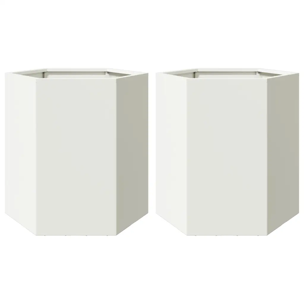 - 2 valget terasest kuusnurkset taimekasti mõõtmetega 46 x 40 x 45 cm ilma põhjata