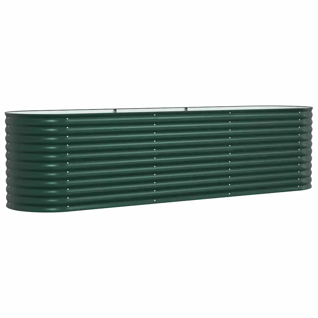 Terasest kõrge aiapeenar pakub praktilist lahendust ürtide, lillede ja köögiviljade kasvatamiseks aias või terrassil. Minimalistlik roheline disain sobitub erinevate väliruumidega, vastupidav teraskonstruktsioon peab seejuures hästi vastu igapäevasele kasutusele ja tavalistele ilmastikutingimustele.