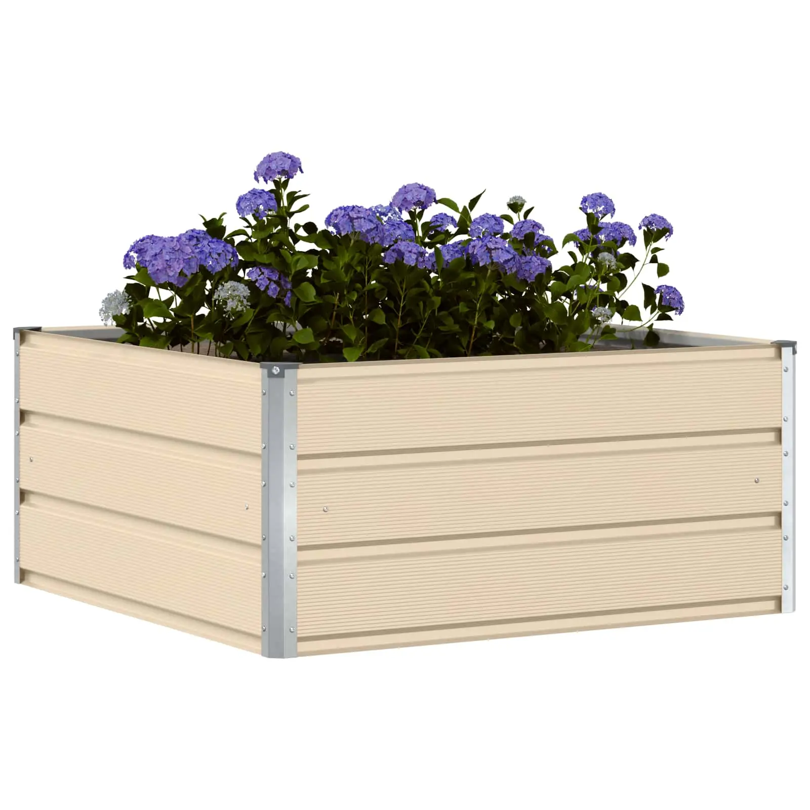 - Rohkelt istutusruumi tänu mõõtudele 100 x 100 x 45 cm sobib kast erinevatele taimedele, alates lilledest kuni maitsetaimede ja madalate põõsasteni, võimaldades luua mitmekesise istutuse.