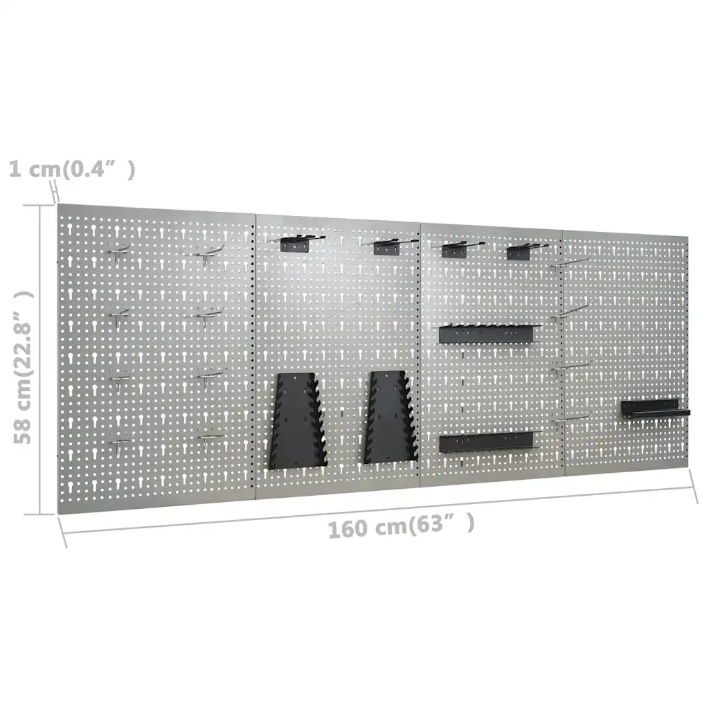 - Neli perforatsiooniga terasest seinapaneeli – mitmekülgsete avadega paneelid võimaldavad tangid, kruvikeerajad, puurid ja võtmed nähtavalt ning käepäraselt seinale paigutada.