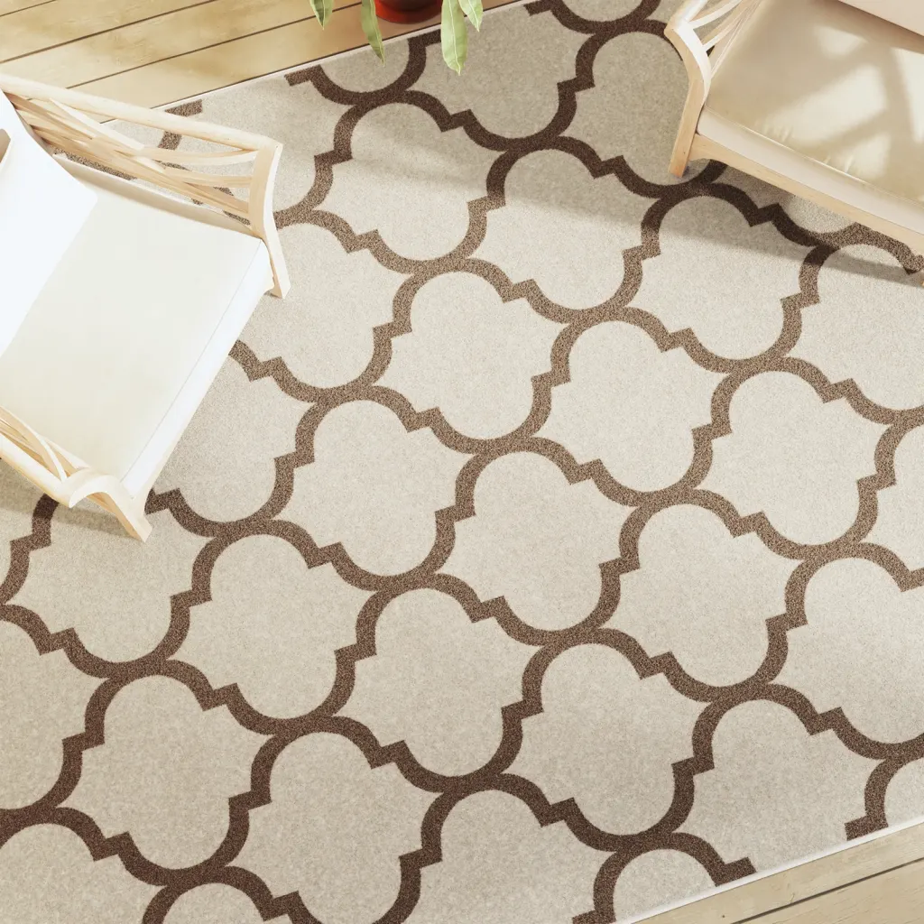 See araabia mustriga toa- ja õuevaip ühendab endas mugavuse, vastupidavuse ja lihtsa hoolduse, sobides kasutamiseks väga erinevates ruumides. Kvaliteetne Sorona Dupont ja polüester säilitavad vaiba kuju ja värvid, libisemiskindel tagus lisab turvalisust ning suur mõõt loob ühtse ja viimistletud ilme nii toas kui terrassil.
