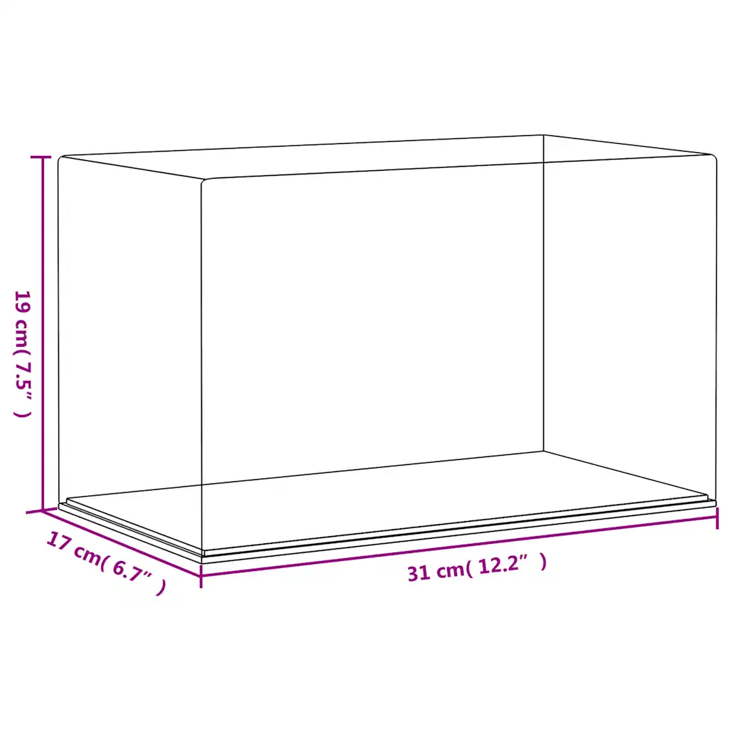 See akrüülist vitriinkast on mõeldud kollektsioonide, mudelite ja muude lemmikesemete turvaliseks eksponeerimiseks. Läbipaistev korpus tagab hea nähtavuse kõigist külgedest, samas kui must põhi loob puhta tausta ja toob esemed esile. Kompaktne mõõt 31 x 17 x 19 cm (P x L x K) sobib hästi riiulile, kapile või kirjutuslauale.