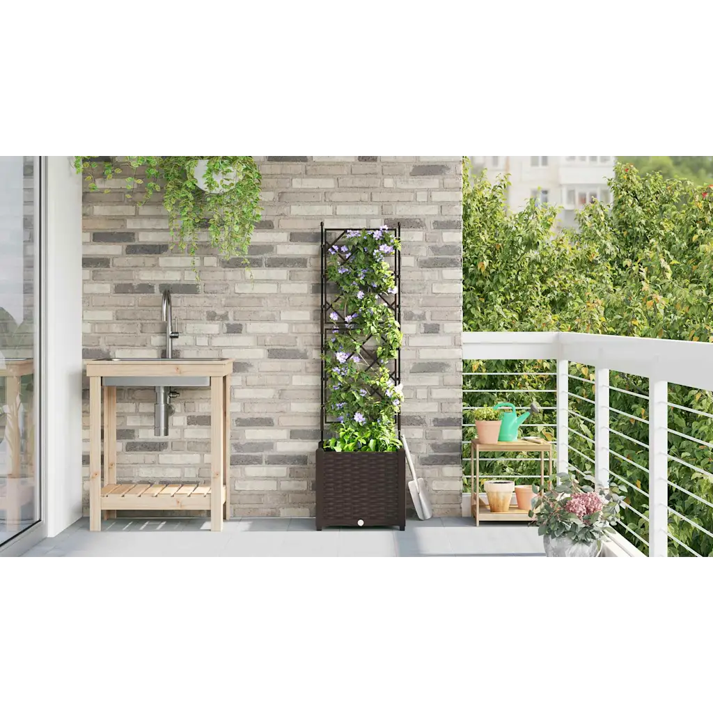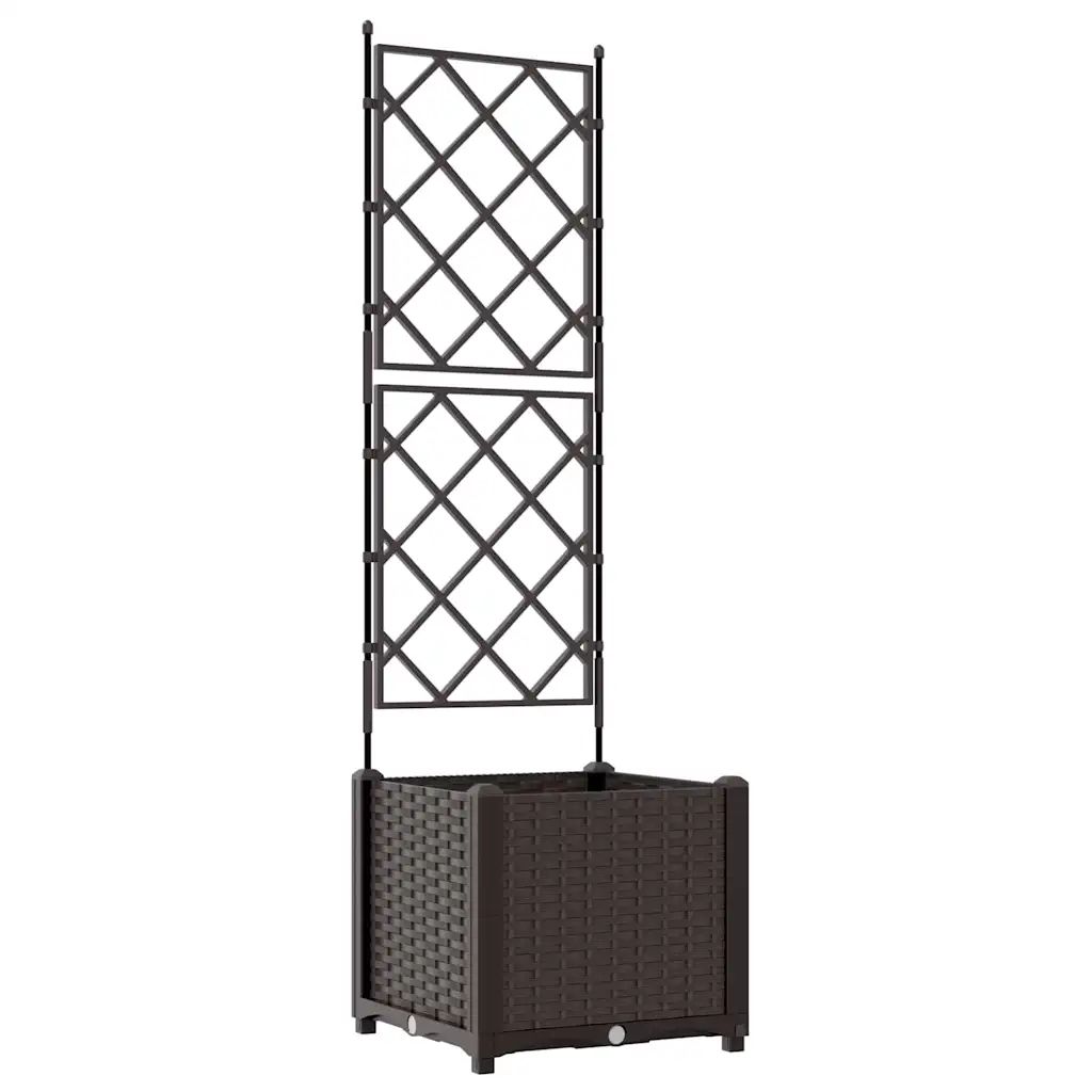 - 1 x pruunist terasest trellisega aia istutuspott mõõtmetega 40 x 40 x 143 cm