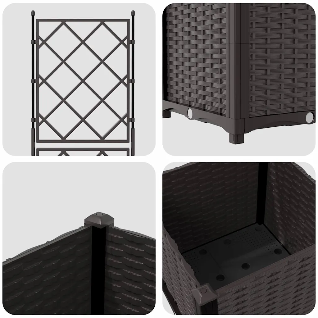 - Kaasaegne, tagasihoidlik disain pruunis toonis sobib erinevate taimevalikute ja väliala stiilidega, rõhutades taimede ilu ilma seda varjutamata.